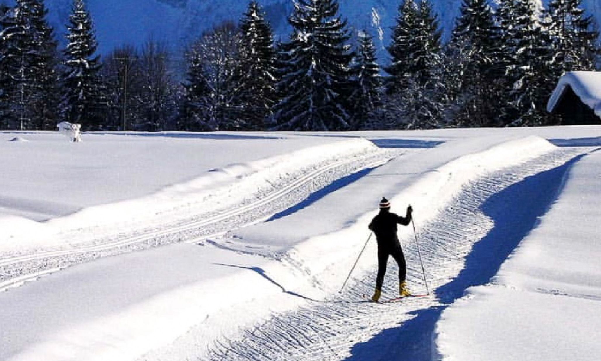 Auf unseren 150 Kilometer Loipen geht es beim Langlaufen sportlich vorbei an verschneite Wiesen, lichte Wälder, entlang der Isar oder kleinen Seen und genießen dabei die herrlich schneebedeckten bayerischen Alpen.